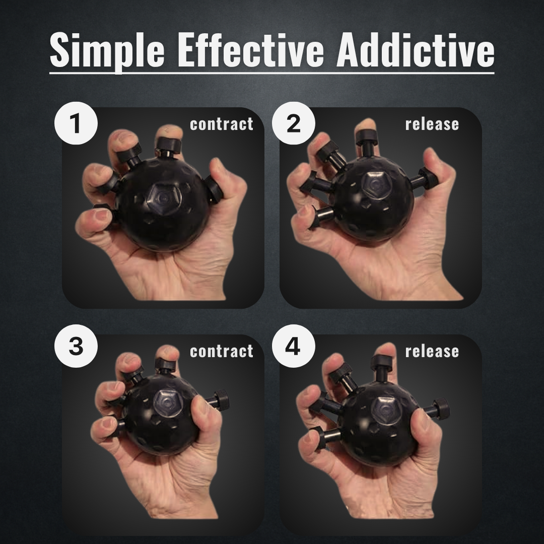 Trains your finger flexors & extensors, brachioradialis, and forearm stabilizers.